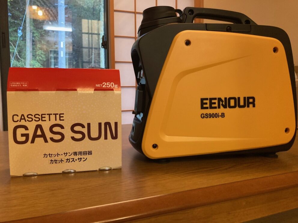 ガスボンベ式のもので発電機とガスボンベ3本がセットになっています!